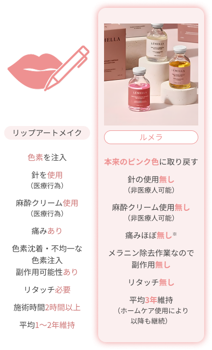 ルメラでは針やレーザーなどは一切使用しないため、痛みとダウンタイムは比較的短く、お肌に優しい施術でございます。